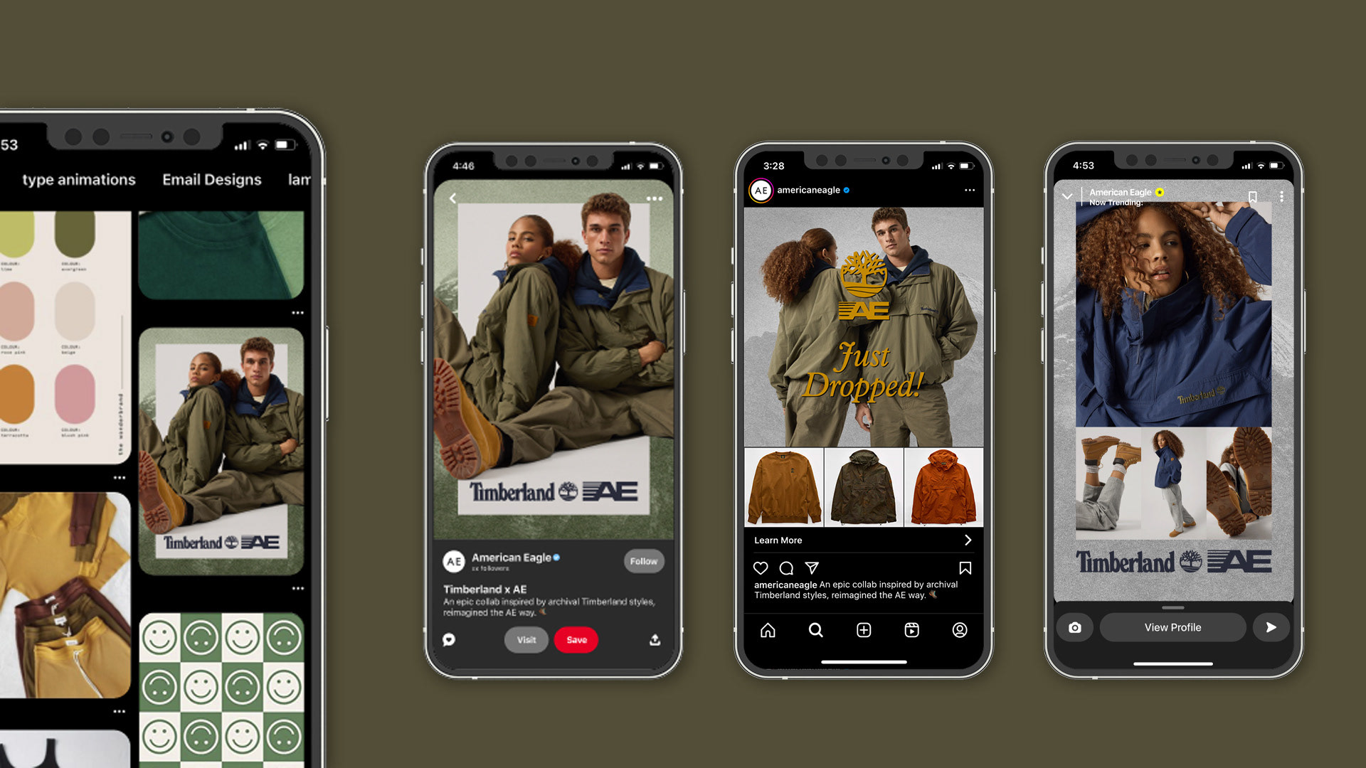 Helped with various creative for the launch of all three seasons of American Eagle's collection collaboration with Timberland. Designed assets for paid media across